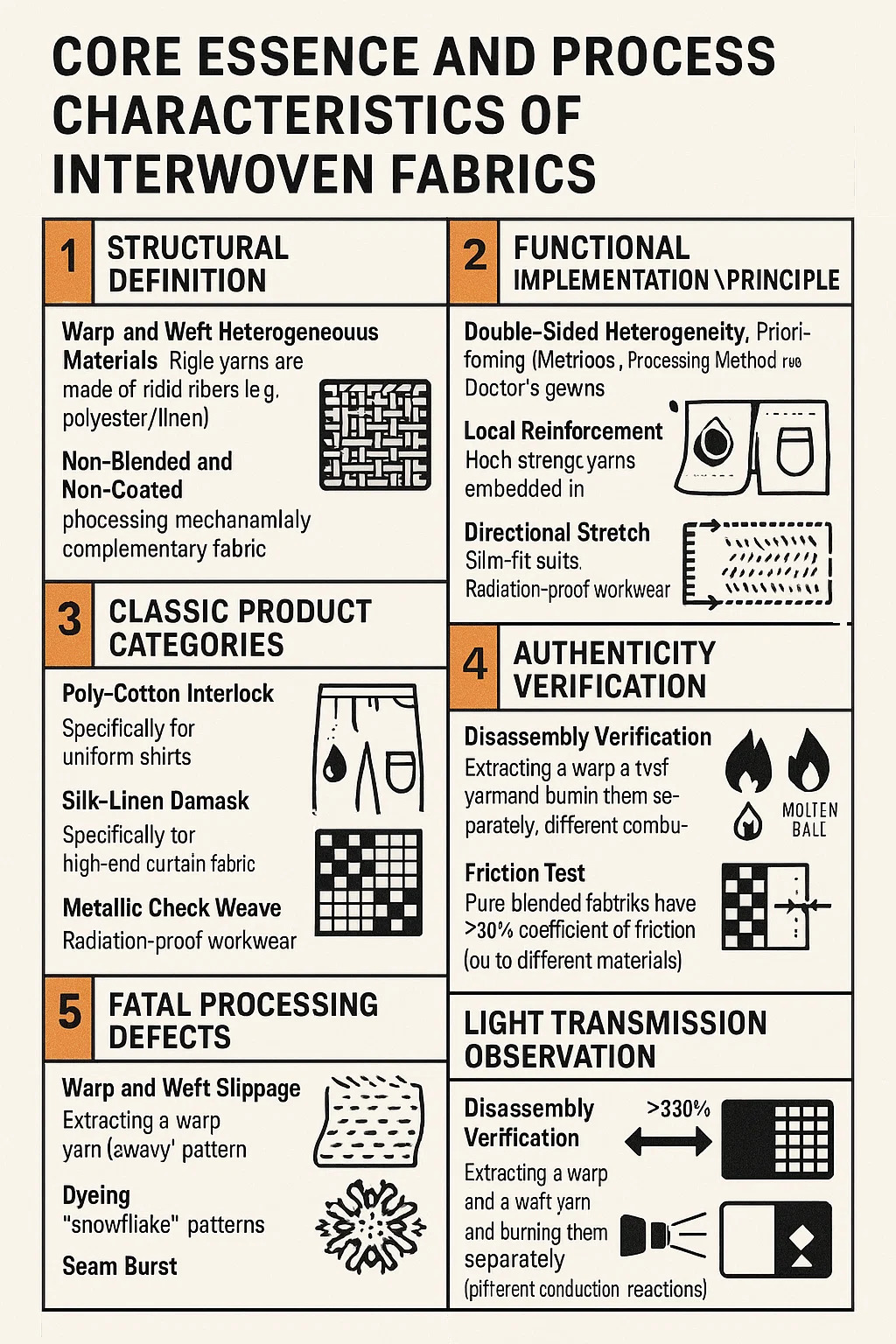Ověření demontáže: Vytáhněte osnovní přízi a útkovou přízi a spálte je odděleně – autentické protkané látky budou vykazovat různé spalovací reakce (např. popel z bavlněného útku/roztavené kuličky polyesterové osnovy).