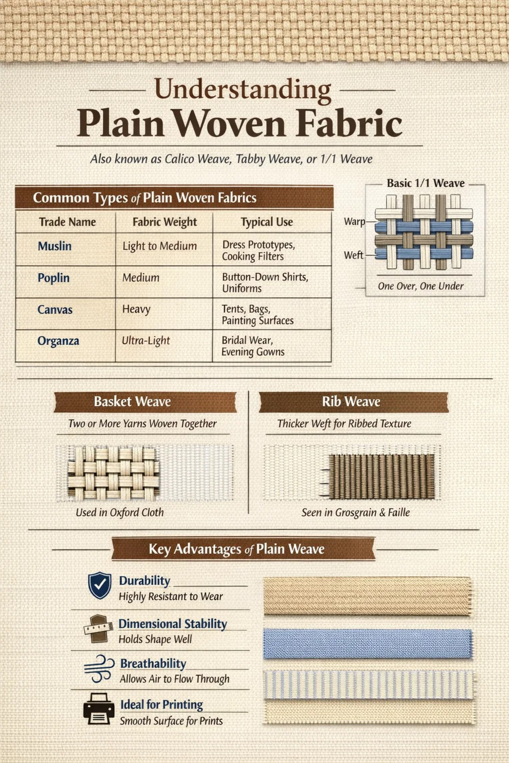 - Tisková plocha: Protože je povrch ve srovnání s keprem nebo žakárem relativně rovný, je nejlepší tkaná látka pro složité tisky a digitální textilní vzory.