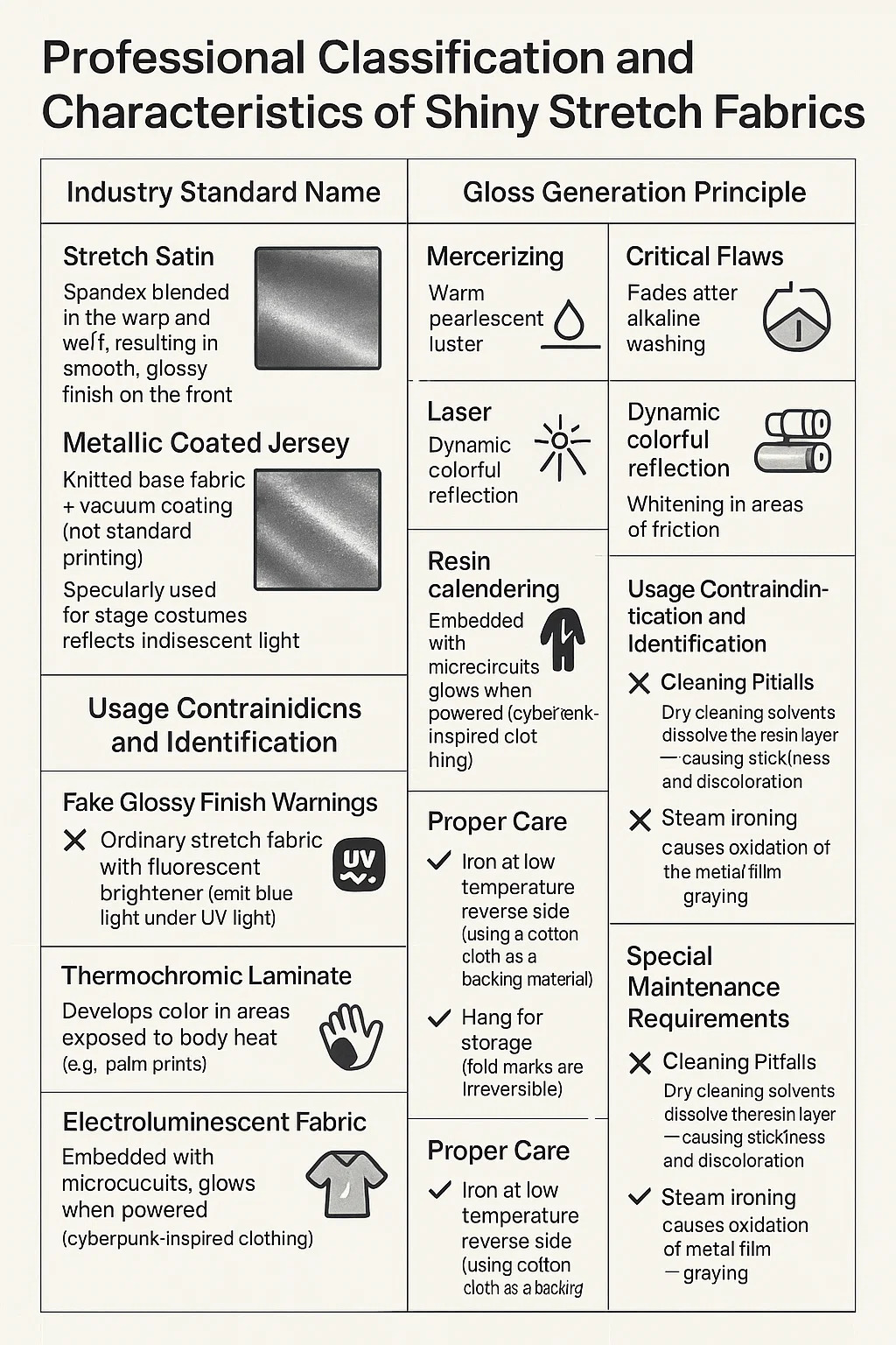 Profesní klasifikace a vlastnosti Shiny Strečové tkaniny